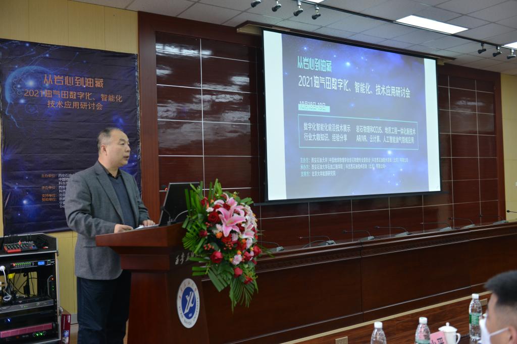 陈军斌副校长出席了研讨会并致欢迎词,向与会代表介绍了学校学科发展、科学研究、人才培养、国际交流等方面基本情况,指出在“碳达峰”、“碳中和”目标引领下,现代油气行业正加速向数字化、智能化转变,希望通过本次研讨会,持续提升油气田数字化、智能化水平,探索突破性技术创新,促进行业高质量发展。