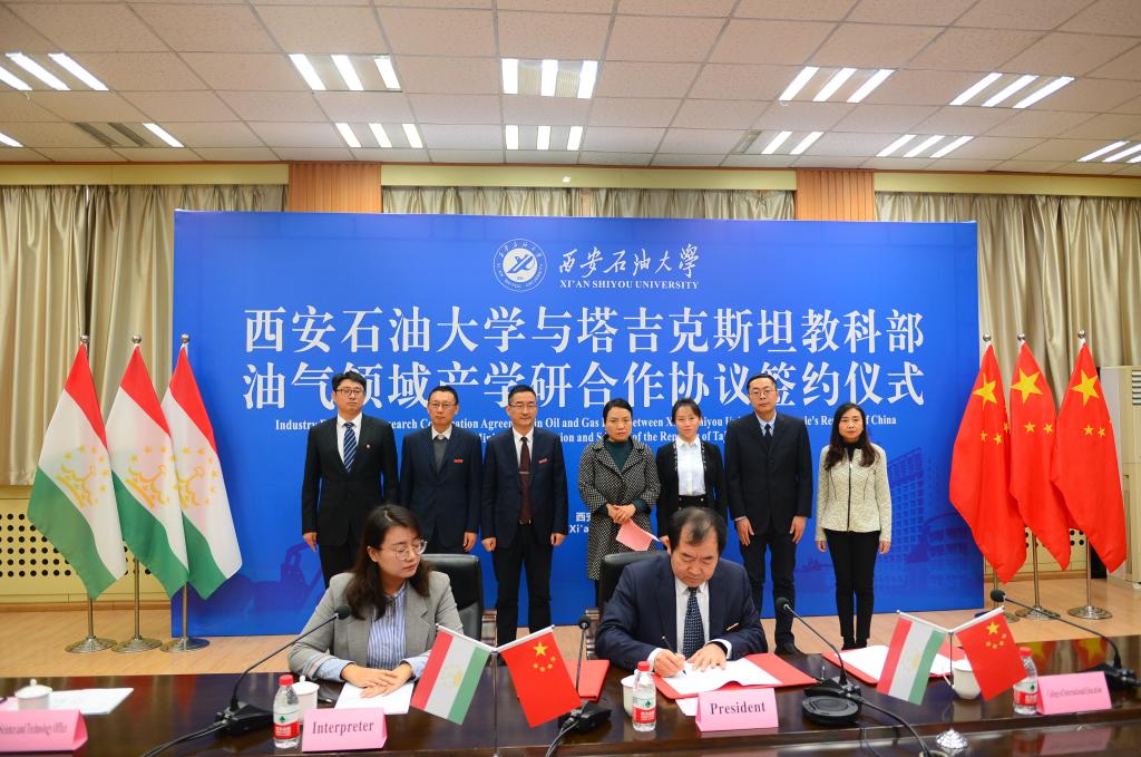签约仪式上,bat365校长李天太与塔吉克斯坦教科部部长赛大利(Muhammadyusuf Imomzoda Saidali)代表合作双方共同签署油气领域产学研合作协议。