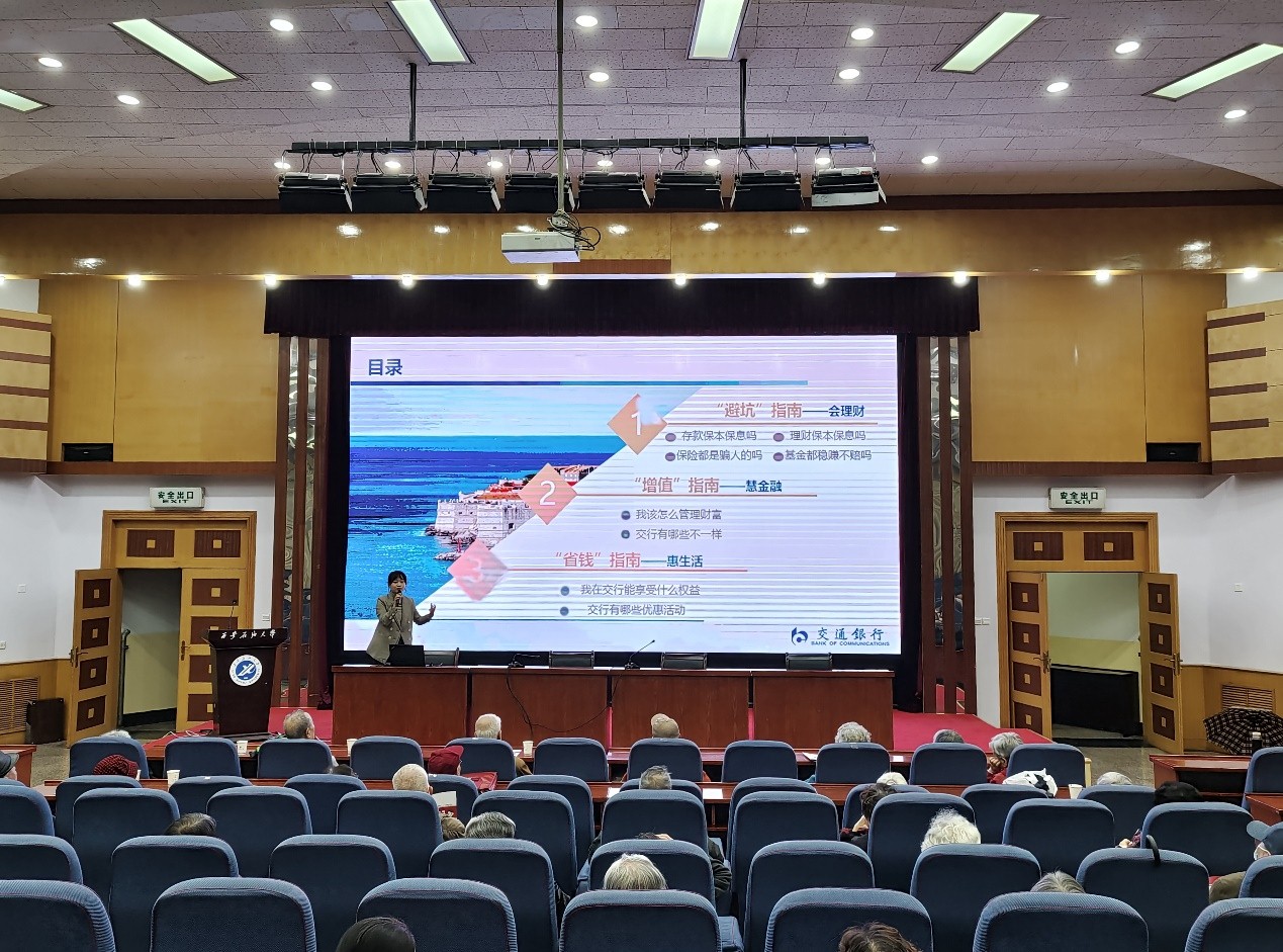 10月15日下午,由离退休职工管理处、财务处共同举办的“金融服务进校园系列之一——离退休教职工金融知识讲座”活动,在bat365雁塔校区学术报告厅顺利召开。本次讲座邀请交通银行吉祥村支行行长梁婷、交通银行陕西省分行个人金融业务部业务专员冯雪婷担任主讲人。学校总会计师樊晓民出席,离退休职工管理处、财务处工作人员及100多名离退休教职工参加了讲座。