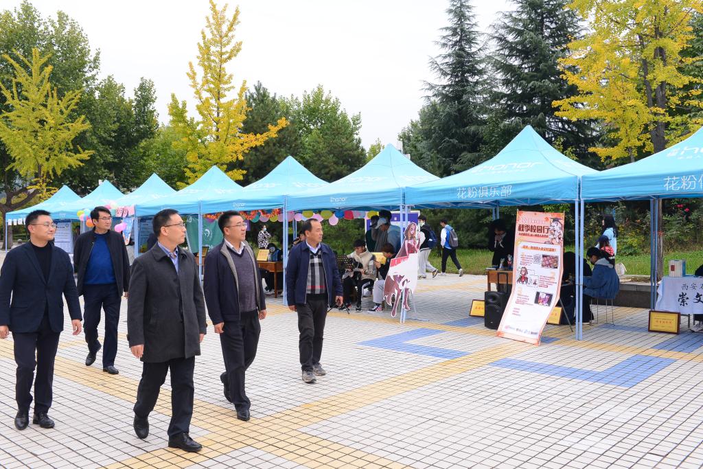 图12 专家组走访东方广场,观摩学生社团活动