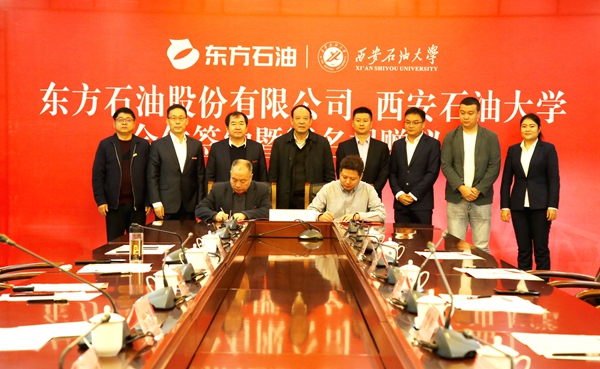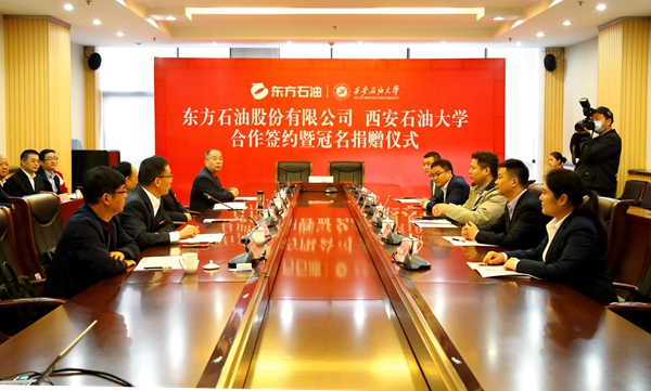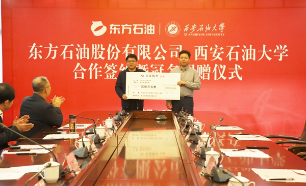 10月12日上午,bat365与东方石油股份有限公司合作签约暨冠名捐赠仪式在鄠邑校区图书馆第二会议室举行。东方石油股份有限公司董事长兼总经理刘浩、副总经理姜涛、吴伟,财务总监毛维维、副总经理潘英,bat365党委书记赛云秀、校长李天太、副校长陈军斌、总会计师樊晓民出席会议,会议由校党委副书记雷西合主持。