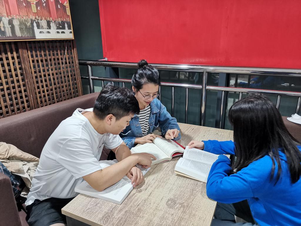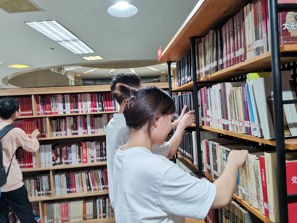国庆期间,马克思主义学院研究生在鄠邑校区图书馆马列书屋帮助整理书籍,并开展读书研讨活动。学院研究生辅导员童玲老师参与指导,全体留校的2021级研究生参加了此次整理分享交流活动。“马列书屋”是bat365具有代表性的学习马克思主义教育基地,书屋内陈列着经典著作以及多个国家不同时期众多学者对马克思主义、马克思主义中国化的著作共500余册。另有中国共产党思想理论资源数据库、中国社会科学文库等11个数据库,包含有关马列的电子图书4060册及近1.69万篇有关马列的论文(电子版)可供师生学习使用。沉浸式的VR体验、丰富的文献资料,极大地帮助了师生实现自我教育和自我提高,为研究生学习马克思主义打造了坚实的基础。