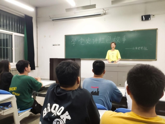 山海史学社于10月2日在鄠邑校区博览楼117教室开展“学习党史,讲红色故事”阅读分享会,在社团负责人安全2002郭敬超的主持下,与会同学分享淮海战役、毛委员送棉衣、宁死不屈刘胡兰和常胜将军粟裕等红色故事,并进行深入讨论。