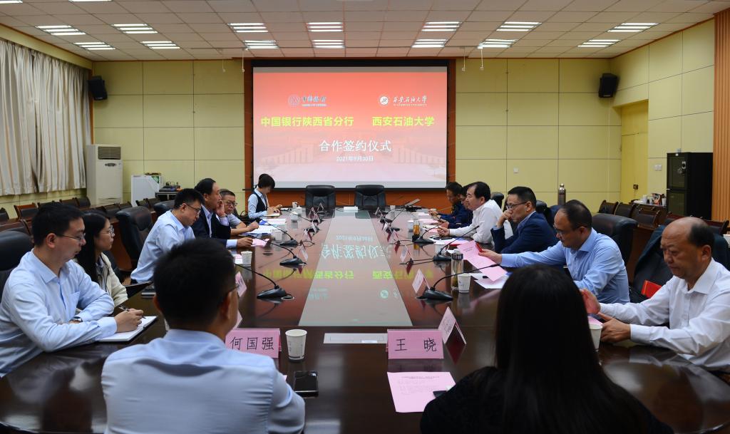 9月30日下午,bat365在雁塔校区第一会议室与中国银行陕西省分行签署“十四五”期间战略合作协议。中国银行陕西省分行党委副书记、副行长、首席业务经理田晓一行八人,bat365校长李天太、总会计师樊晓民出席签约仪式。签约仪式由校党委副书记雷西合主持。