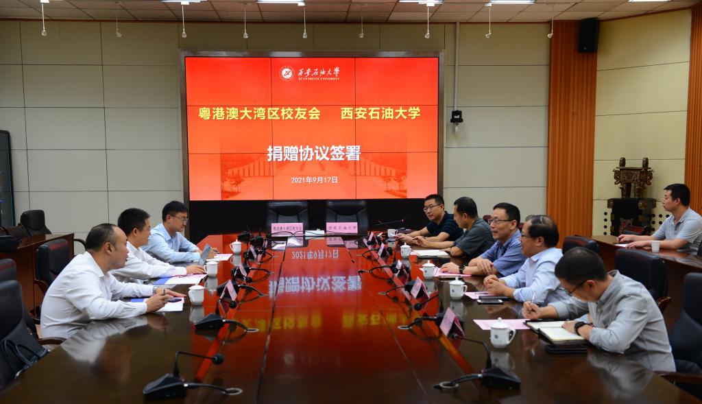 潘志杰副会长对母校的辛勤培育及一直以来学校对粤港澳大湾区校友会的支持表达了感谢。他谈到,粤港澳大湾区广大校友始终不忘自己是西石油人,将永远铭记母校校训,在未来的人生道路上,发扬石油人的优良传统,为社会做出更大的贡献。在母校建校70年之际,为感恩母校,在学校“雁塔校区”和“鄠邑校区”免费建设电动汽车等智能充电系统,希望母校越办越好、更创辉煌,也希望通过此次合作为契机,转化和整合社会资源,在科学研究、成果转化、社会实践等方面实现企业、学校、校友互惠互赢。