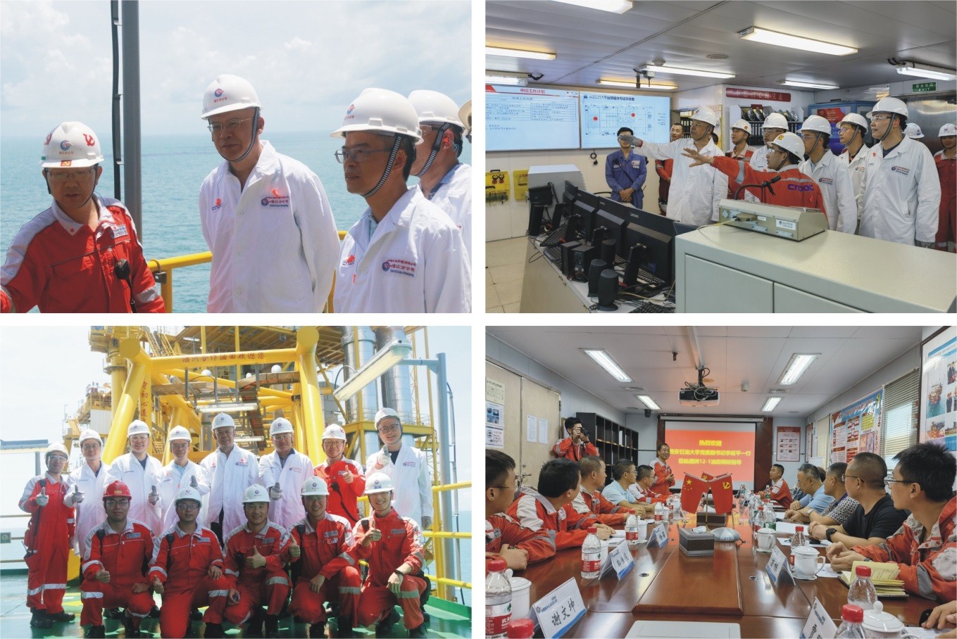 此次走访中,李书记一行特赴中海油湛江分公司南海涠洲12-1油田的四个连体作业平台进行参观调研,深入中海油作业一线了解生产情况,看望慰问bat365毕业生,鼓励他们发扬铁人精神,扎实努力工作,实现人生梦想。