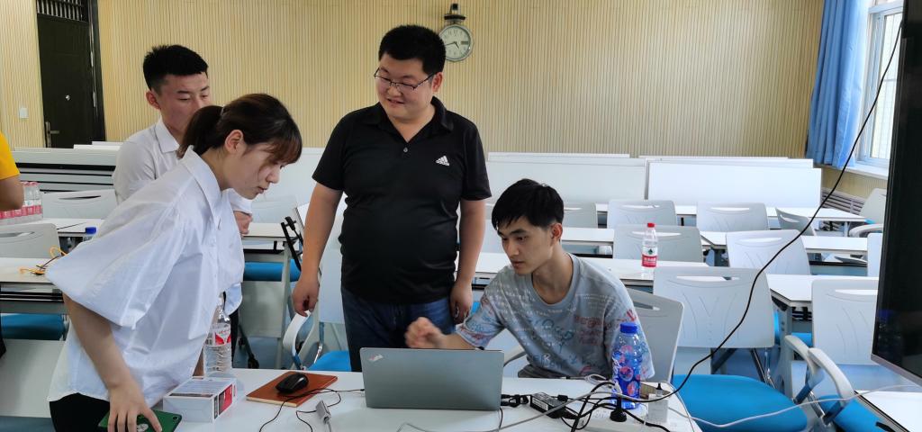 会后,相关职能部门紧急部署安排,于13:30到达鄠邑校区智慧教室搭建比赛平台、调试比赛设备,项目指导老师一并到达赛场对项目进行赛前指导。机械工程学院党委副书记、辅导员代表学院前来现场为参赛团队加油鼓励并送来矿泉水等物资。
