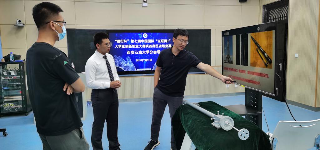 主赛道路演答辩于19:20正式开始,bat365由机械工程学院冯亚洲、李万钟、刘战锋老师指导的项目《深孔微创“手术刀”——深孔内壁加工装置》同西安交通大学、西北工业大学、西安电子科技大学等兄弟高校强队同组竞技,项目答辩人机械1802班范瑞峰发挥出色,现场展示项目实物,用实力展示石油学子科研创新的实力和潜力。地球科学与工程学院马艳萍、宋立军、邱岭、张龙老师指导的项目《漂石成金——矿产资源勘探与环境评估的新途径》克服因疫情原因团队成员两地答辩的实际困难,在小组答辩赛中表现不俗。