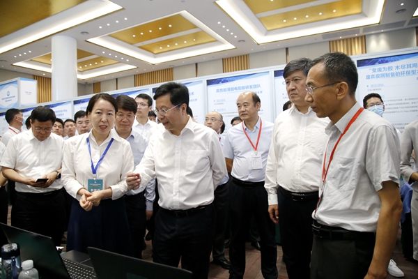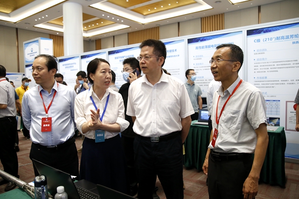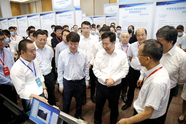 为落实秦创原创新驱动平台建设大会精神,加速“两链”深度融合,推动陕西省高校创新成果向秦创原汇聚,7月18日,由省教育厅、省科学技术厅、省工业和信息化厅、省人民政府国有资产监督管理委员会、省工商业联合会主办的“秦创原·第五届陕西省高校科技成果展暨校企对接洽谈会”在秦创原“总窗口”——西咸新区召开。省委副书记胡衡华、副省长方光华、副省长程福波、省委教育工委书记王建利、省教育厅厅长刘建林等领导在bat365党委副书记张木陪同下参观了bat365科技成果系列展位,对bat365科技成果转化工作给予指导与肯定。科技处负责组织参与本次展洽活动。