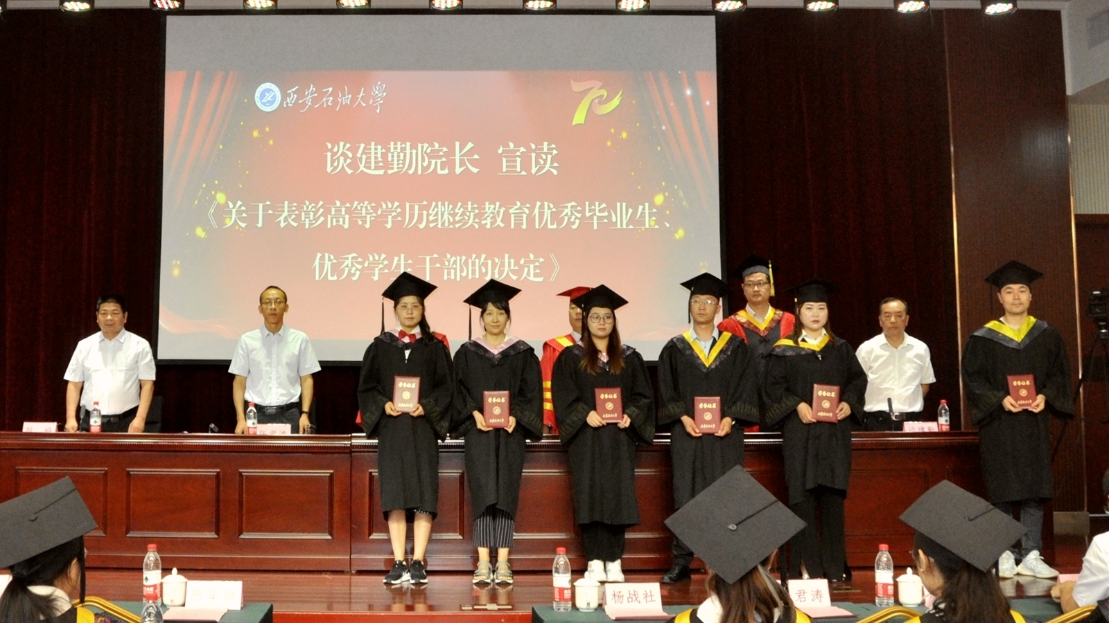 7月10日上午,bat365高等学历继续教育2021年学士学位授予仪式在明德校区明德楼报告厅隆重举行。副校长杨战社,副校长、校学位评定委员会副主席陈军斌,校学位评定委员会委员、教务处处长张君涛,石油工程学院副院长赵金省教授出席学位授予仪式。继续教育学院党总支书记耿岭主持授位仪式。2021年获得学位及因疫情原因未举办授位仪式的2020年获得学位的共36名学生代表参加授位仪式。