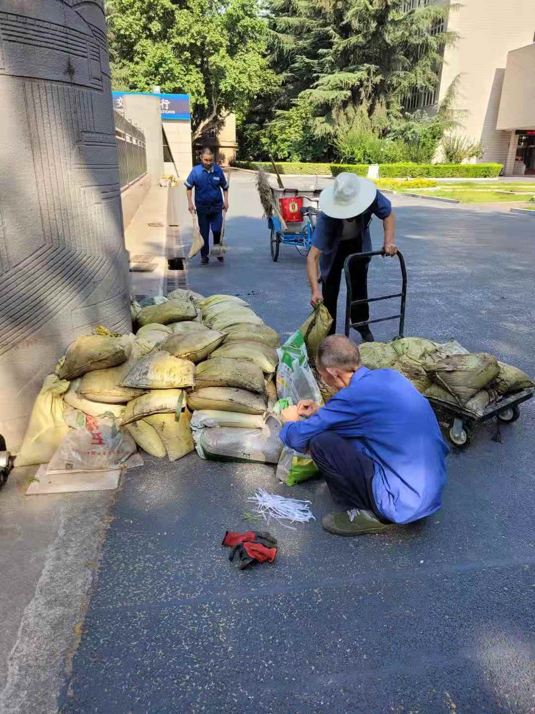 一时间,后勤党员、干部、职工纷纷行动起来:大家各司其职,进行隐患排查和整改,防汛物资准备和值守人员落实。短短的一两天时间里,对雁塔、鄠邑两校区所有学生公寓楼、教学楼、院系楼、实验楼、图书馆楼、食堂、住宅楼等楼顶屋面杂物及雨水排水管管口进行清理,确保楼顶雨水排水管口畅通;对没有学生住宿的宿舍、未使用的教室进行关窗断电,以防雨水进入楼内引发次生伤害;对雁塔校区南门、28~30号住宅楼地下车库、鄠邑校区地下车库等低洼重点区域的防汛物资进行检查,对破损沙袋进行替换和更新,先后在雁塔校区补充防汛沙袋200多条,鄠邑校区新增防汛沙袋1200多条;对校园内雨水收水井内杂物进行清理,确保雨水井及排水管道通畅。此外,为防止大风暴雨导致病枯树枝条掉落发生危险,重点对枯枝朽木进行排查、修剪,消除安全隐患。