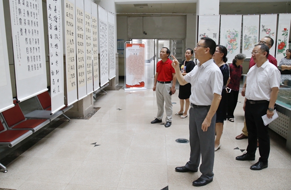 校党委副书记雷西合在参观时谈到,通过欣赏这些感国运之变化、发时代之声的书画作品,我们要深刻感悟党的伟大,厚植家国情怀,秉承校风校训,绘时代画卷,守教育初心,以实际行动为党的教育事业和学校的发展贡献智慧和力量。雷西合副书记仔细观看每一幅作品,并与部分创作者交流,了解创作过程,勉励大家积极创作符合时代精神的优秀作品。他还与老同志回忆了学校的发展历程,高度赞扬了老同志为学校发展做出的积极贡献。