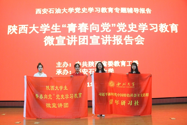 为深入学习习近平总书记在党史学习教育动员大会上的重要讲话精神,按照省委教育工委、省教育厅统一安排,结合学校党史学习教育计划,6月11日下午,陕西大学生党史学习教育微宣讲团代表应邀来bat365作陕西大学生“青春向党”党史学习教育宣讲报告会。四位大学生微宣讲团代表在鄠邑校区弘石报告厅作宣讲报告,bat365400余名师生参加报告会。