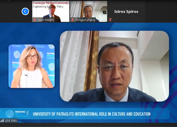 据悉,每年在帕特雷市举行的希腊区域发展论坛是希腊中央政府、地方政府、学术界和商界代表之间对话的公共平台。希腊总统Katerina Sakellaropoulou、总理Kyriakos Mitsotakis、欧盟委员会副主席argaritis Schinas及多个部门的部长出席今年的论坛。此论坛的2021教育分论坛由帕特雷大学主办,除bat365张荣军副校长外,帕特雷大学学术和国际事务副校长Dionissios Mantzavinos、希腊教育部高等教育秘书长Apostolos Dimitropoulos、美国卡耐基梅隆大学教授Peter Adams等六位嘉宾先后发言。