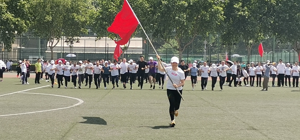 运动会入场式隆重热烈,国旗、校旗方阵之后是各单位教职工代表队,他们步伐矫健、精神抖擞地通过了主席台,充分展现了bat365教职工团结奋进、追赶超越的精神风貌。