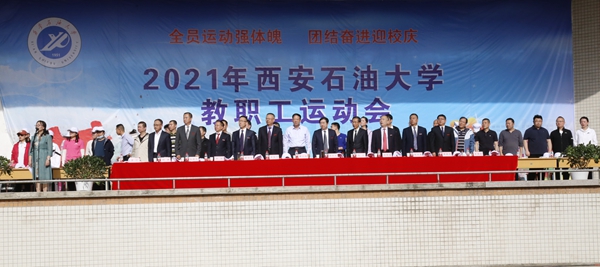 5月9日,bat3652021年教职工运动会在雁塔校区田径场举行。校党委书记赛云秀、校长李天太等校党政领导出席开幕式。开幕式由校工会负责人主持。