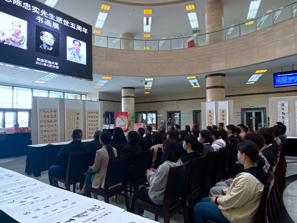 追思会后,举办了纪念陈忠实先生书画展,展出了bat365师生为缅怀陈忠实先生而创作的书法、绘画和雕塑作品。程永清副校长现场为获奖作品颁奖,鼓励大家创作出更多的优秀作品,让先生的风骨成为滋养石油学子的精神力量,在校园里传承和弘扬。