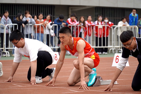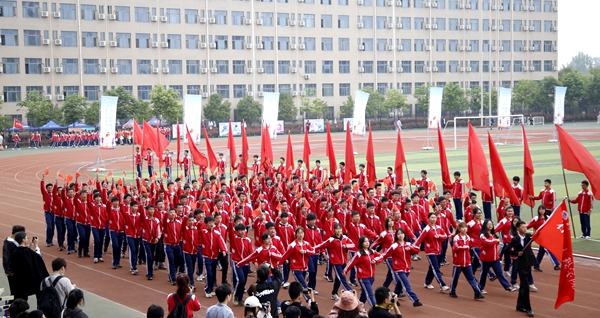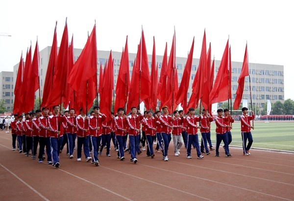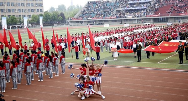 副校长、校体育运动委员会主任陈军斌致开幕辞。他首先代表学校向运动会的开幕致以热烈祝贺,向为本次运动会付出辛勤劳动的教职员工和同学们表示衷心的感谢。他谈到,长期以来,bat365高度重视体育工作,始终坚持“以人为本,健康第一”的体育教育思想,全面落实“健康教育、终身体育”的体育教学理念,充分发挥体育在学生成长成才和全面发展中的重要作用,营造了良好的校园体育活动氛围。在过去的两年里,学校各项体育竞赛活动蓬勃开展,bat365学子在众多体育赛事中取得了优异成绩,为学校赢得了荣誉。他希望望全体运动员遵守比赛规则,服从裁判,奋力拼搏,赛出水平,赛出风格,尽情体验“更快、更高、更强”的奥运精神;全体裁判员在赛场上客观公正,严格执法;希望全体工作人员积极工作,热情服务,保证运动会顺利举行。
