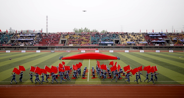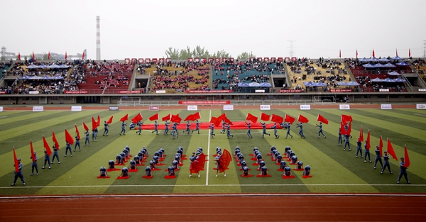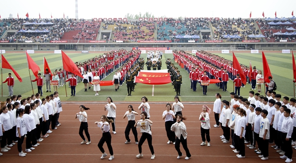 由校团委精心组织编导的大型团体舞蹈《红旗颂》气势恢宏、场面壮观,表达了bat365师生迎接中国共产党成立100周年的美好期待,表现了bat365师生积极向上的精神风貌,把开幕式推向了高潮。
