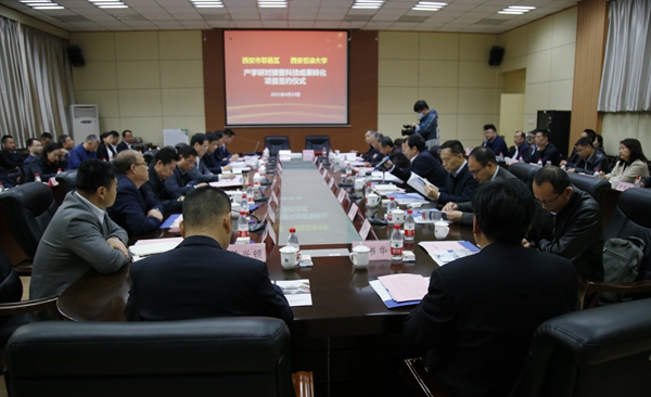 李天太校长对西安市科技局、鄠邑区长期以来给予学校的大力支持表示衷心感谢,并简要介绍了学校的发展历史和基本情况,着重介绍了学校近年来在人才培养、科学研究、学科专业、师资队伍、合作交流等方面取得的成绩。李校长表示,将以本次产学研对接及科技成果转化项目签约为契机,进一步深化学校与鄠邑区产学研合作交流,积极发挥学校特色优势,大力推进科技成果就地转移转化,助力区域经济创新驱动高质量发展。
