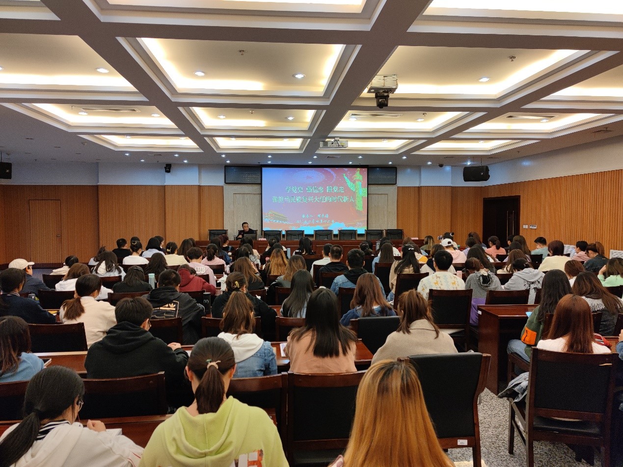 4月12日晚,程永清副校长在鄠邑校区图书馆第一会议室为外国语学院学生党员讲授以“学党史,强信念,跟党走,做担当民族复兴大任的时代新人”为主题的党史学习教育辅导报告。辅导报告由学院党委副书记王业青主持。学院专职组织员、学生党员、入党积极分子共计120余人参加学习。