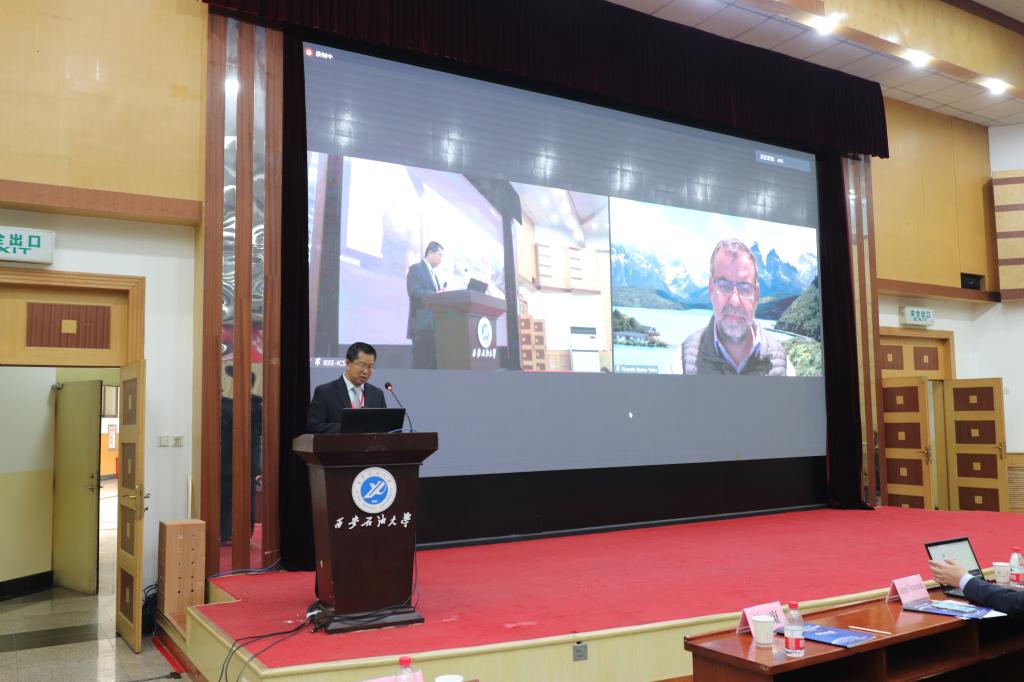 会议采取线上+线下同步模式。大会主席、校长李天太教授代表主办方用英文致辞。他向各位参会代表表示欢迎,并介绍了学校的发展历史和基本情况,着重介绍了学校近年来在人才培养、科学研究、社会服务、国际交流合作等方面取得的成绩。他谈到,此次学术会议为本领域的学者、专家搭建了交流的平台,希望大家共同推动学术发展和技术进步。