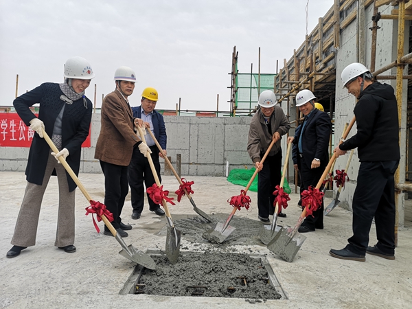 随后,参加仪式的领导和嘉宾共同将混凝土注入预留的方形槽中,至此,鄠邑校区19#、20#学生公寓楼项目主体工程顺利封顶。