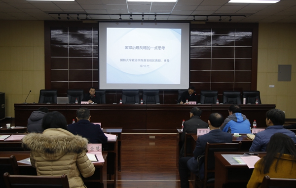 在学术研讨环节,国防大学政治学院西安校区李保忠教授、陕西工运学院薛丁齐教授、西北工业大学马克思主义学院郝保权教授、西安电子科技大学马克思主义学院贾钢涛教授、bat365中文官方网站马克思主义学院郭艳英副教授围绕“国家治理战略的一点思考”“从苏共兴亡的历史教训看‘旗帜鲜明讲政治’”“国家治理现代化进程中民主集中制优化”“准确识变 科学应变 主动求变”“深刻认识百年未有之大变局”等专题作了精彩的主旨报告。西安电子科技大学马克思主义学院刘建伟教授和西安电子科技大学研究生王颖作为获奖论文作者代表发言。