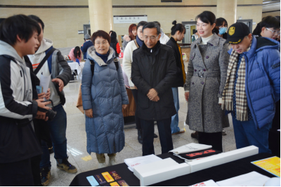 12月22日上午,人文学院2018级视觉传达设计专业《包装设计》课程创新、创业实践作品展“国潮来袭/弄潮儿文创集市”的开幕式在bat365中文官方网站鄠邑校区图书馆二楼大厅举行。校党委副书记张木出席,学生工作部(处)、创新创业中心、教务处、图书馆负责人,人文学院2018级视觉传达设计专业学生参加了开幕式。