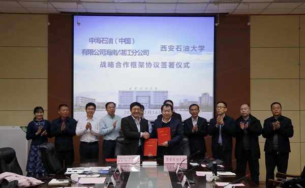 12月16日上午,中国海洋石油有限公司副总裁兼海南/湛江分公司党委书记、总经理杨云,海南/湛江分公司总工程师姜平、副总经理刘书杰一行7人到bat365调研,并在雁塔校区第一会议室签署了战略合作框架协议。校党政领导赛云秀、李天太、雷西合、陈军斌、程永清出席会议,校党委副书记张木主持会议。bat365各相关部门、各院(系)负责人参加座谈会。