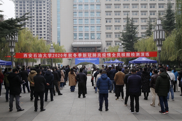 11月27日下午,bat365在雁塔校区忠实广场举行了2020年秋冬季新冠肺炎疫情全员核酸检测演练活动,教职工代表和学生代表共约200人参加了演练,副校长苏文甫主持演练活动。