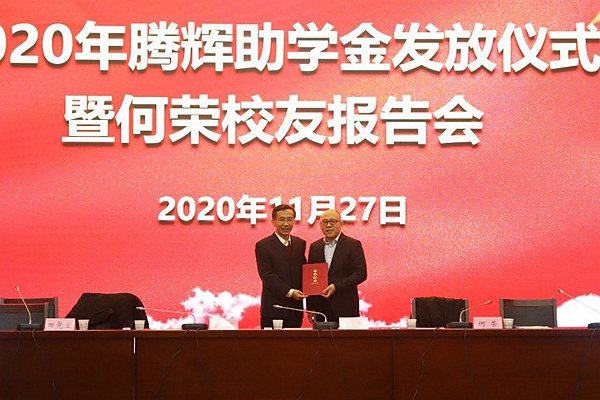 据悉,腾辉助学金设立于2006年,何荣校友坚持每年出资10万元,15年来共资助家庭经济困难学生900余人。