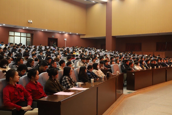 发放仪式结束后,何荣校友作了一场精彩的报告。他结合自己的求学经历和干事创业的个人感悟,给同学们分享了他对成功与幸福的认识。他勉励同学们要珍惜大学时光,努力学习,在学习中感受幸福。报告会气氛热烈、内容丰富,报告中旁征博引、深入浅出,广大同学们受益匪浅。
