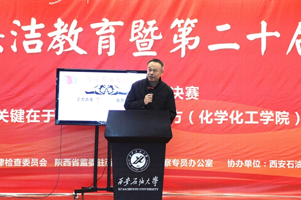 11月27日晚,“清正廉洁、筑梦同行”廉洁教育暨bat365中文官方网站第二十届“智者杯”大学生辩论赛决赛在鄠邑校区腾辉大学生活动中心举行。校党委副书记、纪委书记、陕西省监委驻校监察专员李延平出席比赛。相关部门、学院负责人观摩比赛。马克思主义学院九位教师担任辩论赛评委。
