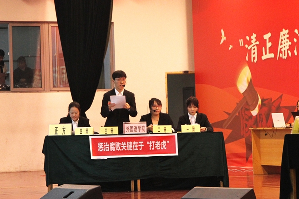 校党委副书记、纪委书记、监察专员李延平作了总结讲话。他指出,“智者杯”辩论赛展示了bat365青年学生探索真理、追求知识、注重合作、群策群力的激情和风采,对学生的逻辑思维能力、语言表达能力、思辨能力以及团队协作能力都有很大的提高。从决赛现场的辩论中,可以看出同学们对党中央全面从严治党的深刻理解和高度认同,从而使辩论赛同时成为了一场生动的廉洁文化教育。党的十八大以来,以习近平同志为核心的党中央坚持铁腕反腐,坚持反腐败无禁区、全覆盖、零容忍,坚持“老虎”“苍蝇”一起打,不敢腐的目标初步实现,不能腐的笼子越扎越紧,不想腐的堤坝正在构筑,反腐败斗争压倒性态势已经形成并巩固发展。大学是传承文明和培养高素质人才的重要阵地,清正廉洁是高素质人才的核心素养,对大学生进行廉洁教育,增强廉洁意识,培养廉洁操守,是高校思想政治教育的应有之义,也是大学生健康成长之所需。在大学教育体系中,加强对大学生的廉洁教育,不仅是对大学生的深情关怀,而且也是高等教育的职责所在。