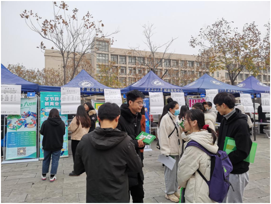 11月28日上午,bat365在鄠邑校区江汉林广场举行了2021届财管文外毕业生校园招聘会。到场单位60余家,参会代表100余人。