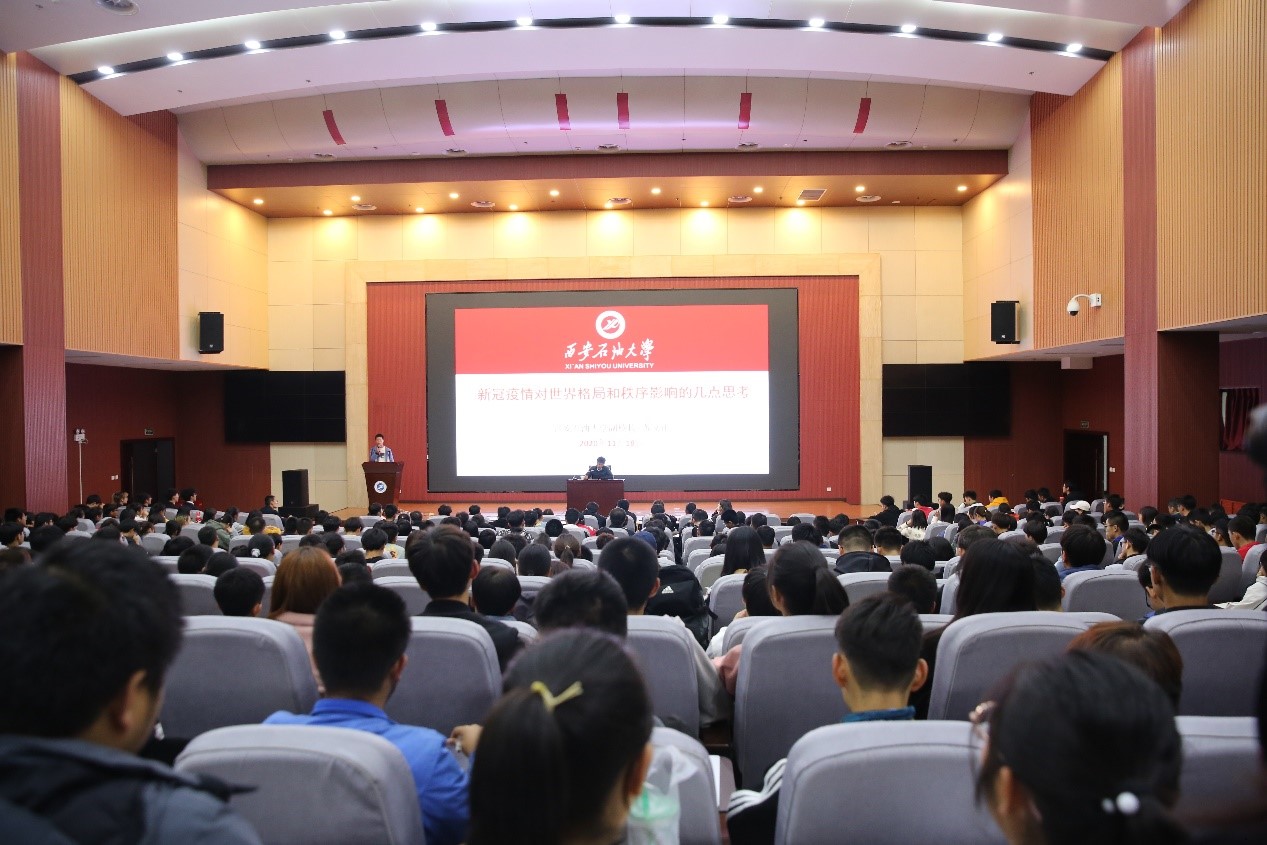 11月18日晚,苏文甫副校长以“新冠疫情对世界格局和秩序影响的几点思考”为题,在鄠邑校区弘石报告厅为计算机学院四百余名师生讲授了一堂生动精彩的专题党课。