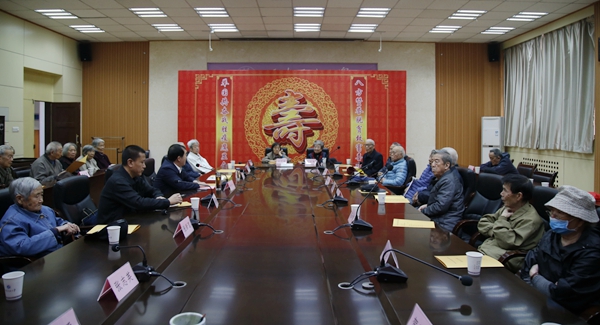 离休干部薛纪元,退休教授成绥民,退休老干部李育生、屈坤儒、杨国华分别代表寿星发言。他们对学校近几年来各项工作所取得的成绩表示赞赏,同时感谢学校多年来的关心爱护。老同志纷纷表示将继续发挥余热,传递正能量。