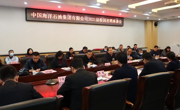 10月14日下午,中国海洋石油集团有限公司人事部来校洽谈2021届毕业生引进工作。座谈会在鄠邑校区第二会议室召开,中海油人事部副总经理周林波,bat365校长李天太、校党委副书记张木出席。中海油相关二级单位人力资源部负责人,bat365相关部门、各院(系)主要负责人参加会议。座谈会由学生工作部(处)长、就业指导中心主任赵健主持。