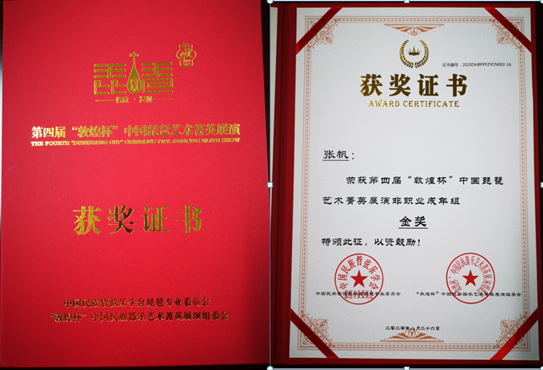 近日,第四届“敦煌杯”中国琵琶艺术菁英展演落下帷幕,音乐系副主任张帆以具有浓郁京韵大鼓风格的琵琶独奏曲《弦子韵》以及琵琶传统大套文曲《塞上曲》两首曲目在比赛中获得金奖。由于疫情原因,此次比赛首次采用了云端线上比赛的方式进行。8月初,张帆先以一首琵琶协奏曲《云想花想》晋级决赛,接着从晋级60人的决赛中脱颖而出,获得金奖(全国第二名)的好成绩。