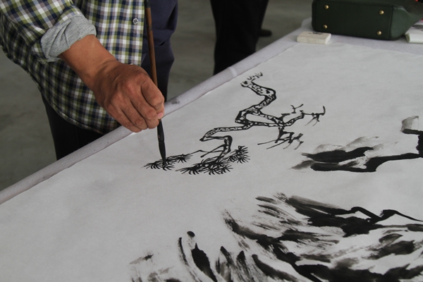 在开幕式之后,bat365中文官方网站教职工书画协会和永寿县书协、美协会员们开展了现场交流活动。书画爱好者在现场泼墨挥毫,创作了一幅幅精美作品,吸引了在场观众的驻足欣赏。