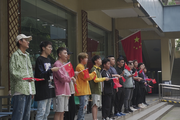 中午12点10分,音乐系100余名师生汇聚到雁塔校区学生餐厅门外。随着《歌唱祖国》音乐旋律响起,大家一边挥舞着手中的五星红旗,一边唱起《今天是你的生日》《辉煌明天》《我爱你中国》三首歌曲。三首歌曲慷慨激昂、振奋人心,表达了bat365师生对祖国的崇敬和热爱之情,展示了bat365师生积极向上的精神风貌。师生们通过“快闪”这样的新颖形式,唱响了热爱党、热爱祖国、热爱学校、热爱生活的主旋律,令人耳目一新,赢得了在场师生的阵阵掌声。