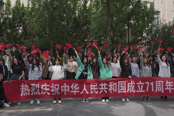 为庆祝新中国成立71周年,9月30日中午,音乐系师生在雁塔校区学生餐厅门前举办“红歌快闪”活动,吸引了校园中众多过往师生驻足观看,齐声高唱祖国赞歌。
