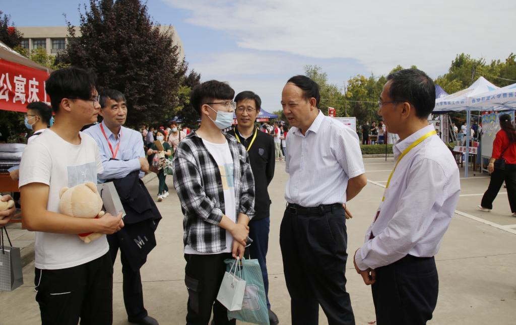 校领导深入新生接待点、校医院、家长休息区等处慰问广大新生、家长和迎新工作人员,了解新生报到情况,详细询问报到流程。校领导要求,各有关职能部门、各院(系)要高度重视疫情防控形势下的迎新工作,规范扫码测温,严格消毒流程,发放爱心健康包,确保学生安全有序开学。同时,要增强现场协同联动机制,在工作中强化服务意识,坚持以学生为本,为学生和家长提供细心周到的服务,树立学校的良好形象。在迎新现场,赛云秀书记、李天太校长为新生代表送上了小礼物,并与新生亲切交谈,鼓励他们珍惜韶华、继续奋进,不断提升综合素质,练就过硬本领。