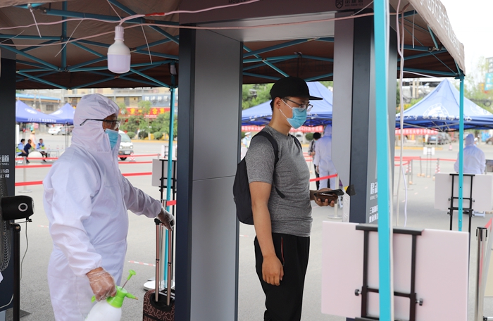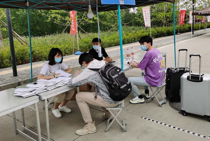 学工部(学生处)干部、各学院副书记、辅导员在接待点坚守,在学生返校后第一时间做好信息登记、教育提醒和温馨提示,并向学生发放“防疫爱心礼包”。