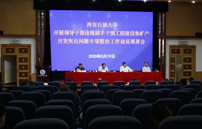 5月19日下午,学校在雁塔校区会议中心学术报告厅召开领导干部违规插手干预工程建设和矿产开发突出问题专项整治工作动员部署会。全体校领导、校纪委委员、全体正处级干部、有关单位主持工作的副处级干部、各院(系)党委(党总支)副书记参加会议。会议由党委副书记、校长李天太主持。
