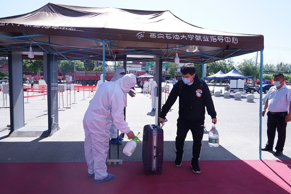 夏花绚丽,学子归来。5月12日,bat365迎来符合疫情防控要求的首批本科毕业生顺利返校。同学们通过核验健康码、测量体温、更换口罩、行李消毒等环节,有序步入阔别许久的校园,言语与眼神都闪耀着激动与喜悦。