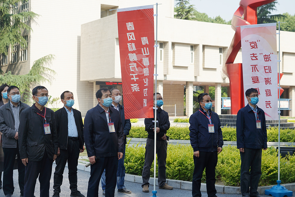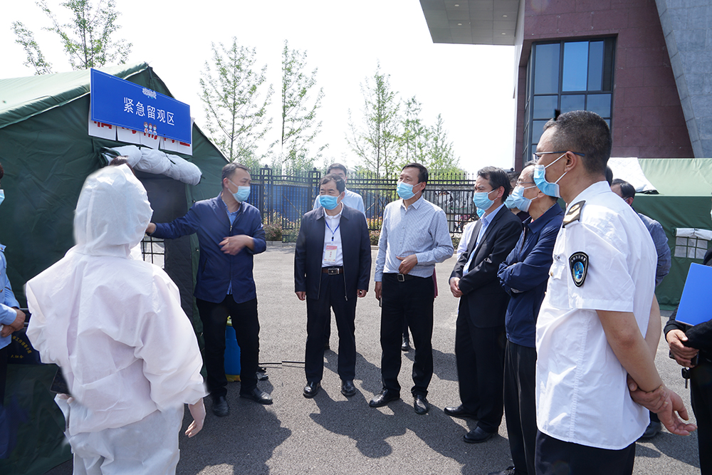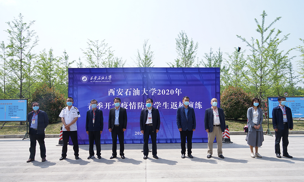 为做好学校开学期间的疫情防控工作,进一步检验bat365防控工作方案,4月27日和28日,学校分别在雁塔校区和鄠邑校区举行春季学期疫情防控演练。校党政领导赛云秀、李天太、张木、陈军斌、李华、苏文甫,以及鄠邑区卫健局副局长刘护社一行八人到现场观摩指导。