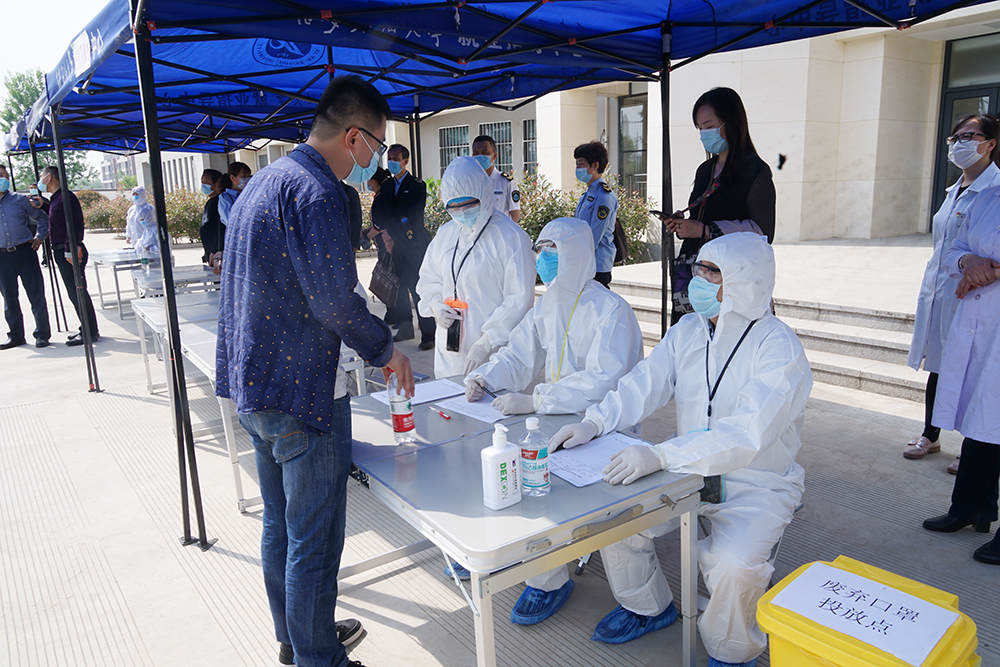在食堂,演练按照事先制定的错时用餐、快速取餐、间隔就餐的方案,从间隔一米排队、测量体温、洗手取餐、间隔用餐到餐后离开食堂等,对整个用餐流程进行了模拟。在教室、实验室、图书馆等场所,也严格按照间隔一米排队、测量体温、靠右行走的程序演练。如发现体温异常学生,工作人员将其引导至临时留观点进行体温复测,若复测体温仍异常,工作人员逐级报告疫情防控工作领导小组,安排医生和救护车将体温异常学生送至隔离区。