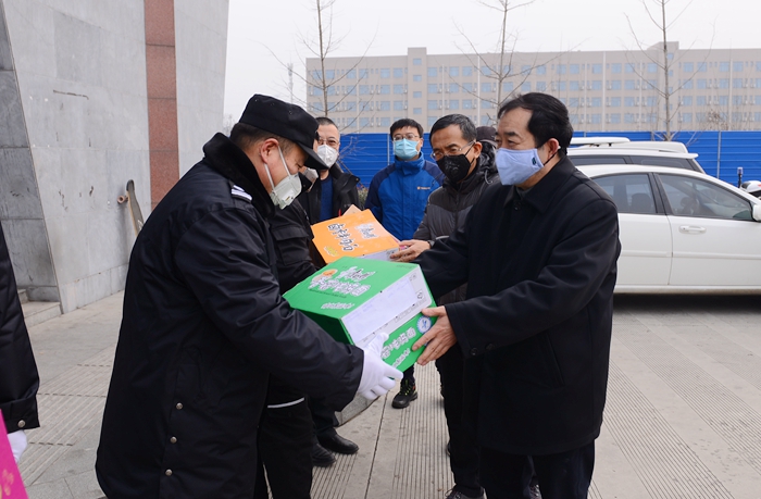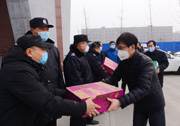 2月1日下午,学校疫情防控工作领导小组组长、校长李天太,领导小组副组长、校党委副书记张木,领导小组副组长、副校长苏文甫在党委组织部、纪委监察处、保卫处、后勤管理处等部门负责人陪同下,看望慰问了疫情防控一线的工作人员。